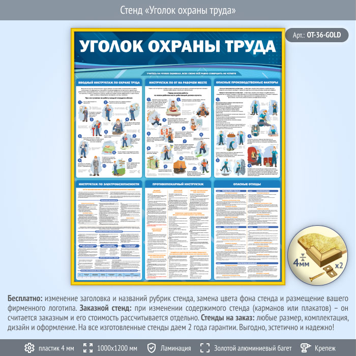 Стенд «Уголок охраны труда» (OT-36-GOLD) в Кызыле купить