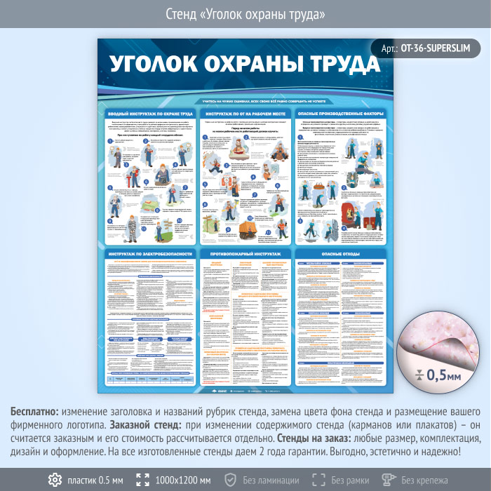 Стенд «Уголок охраны труда» (OT-36-SUPERSLIM) в Кызыле купить