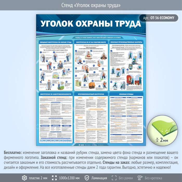 Стенд «Уголок охраны труда» (OT-36-ECONOMY) в Кызыле купить