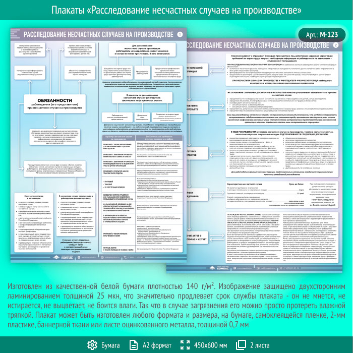 Плакаты «Расследование несчастных случаев на производстве» (М-123, ламинированная бумага, А2, 2 листа) в Кызыле купить