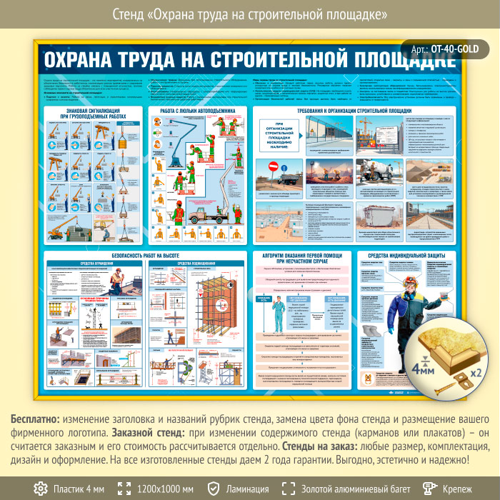 Стенд «Охрана труда на строительной площадке» (OT-40-GOLD) в Кызыле купить