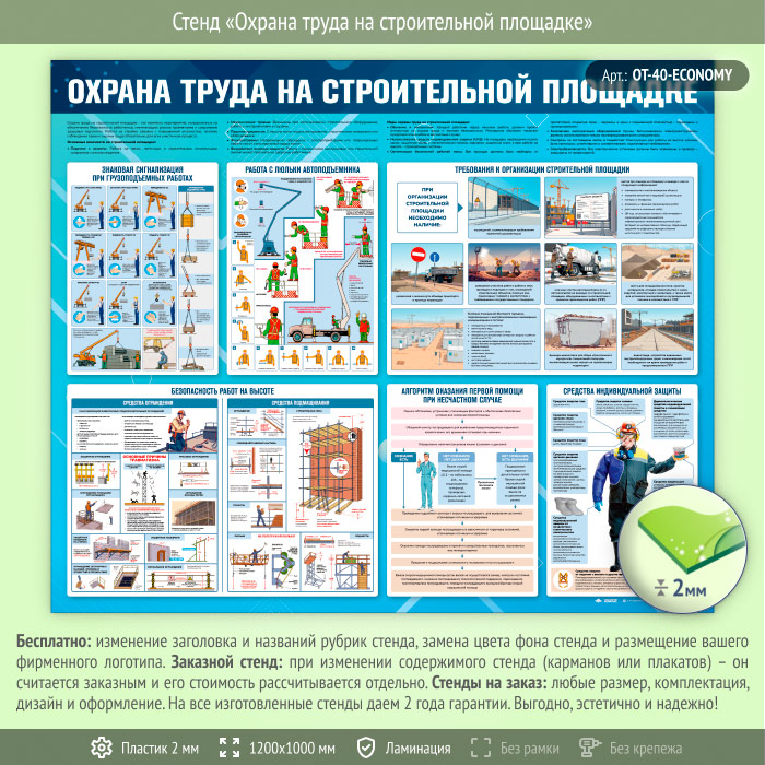 Стенд «Охрана труда на строительной площадке» (OT-40-ECONOMY) в Кызыле купить