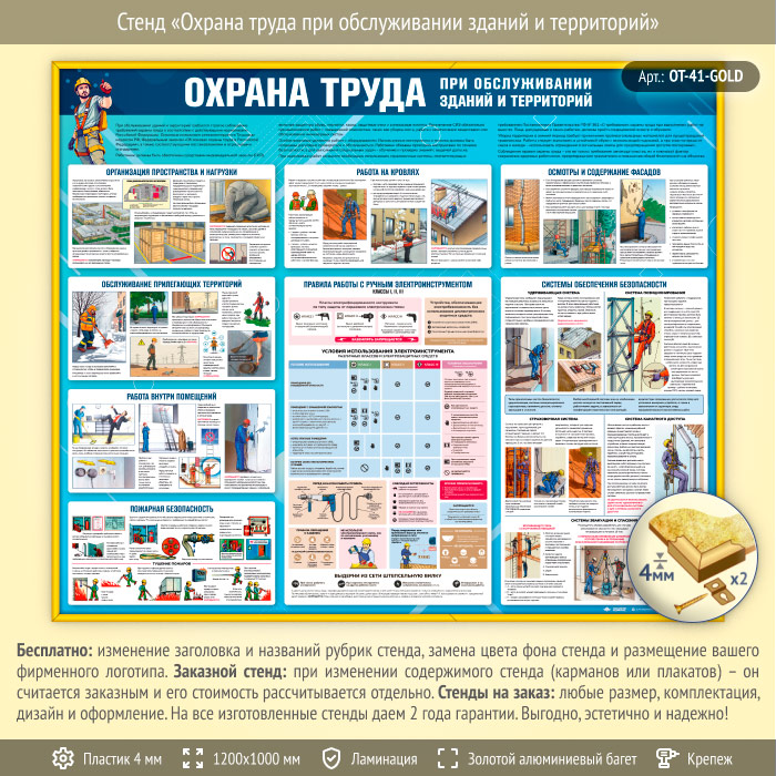 Стенд «Охрана труда при обслуживании зданий и территорий» (OT-41-GOLD) в Кызыле купить