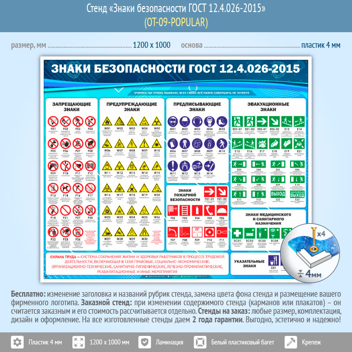 Стенд «Знаки безопасности ГОСТ 12.4.026-2015» (OT-09-POPULAR) в Кызыле купить