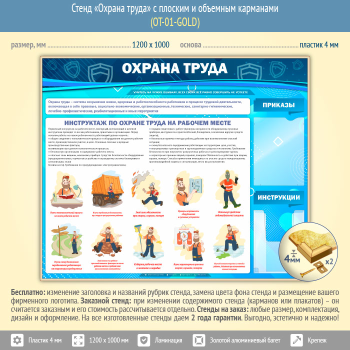 Стенд «Охрана труда» с плоским и объемным карманами (OT-01-GOLD) в Кызыле купить