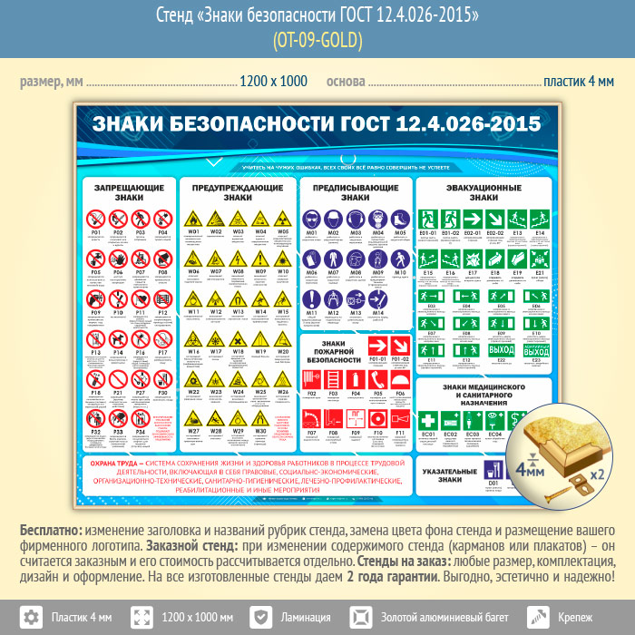Стенд «Знаки безопасности ГОСТ 12.4.026-2015» (OT-09-GOLD) в Кызыле купить