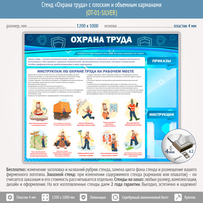 Стенд «Охрана труда» с плоским и объемным карманами (OT-01-SILVER) в Кызыле купить
