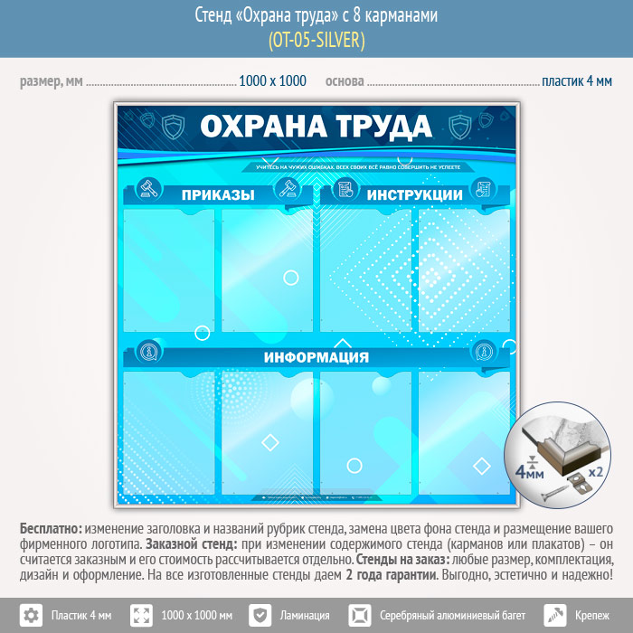 Стенд «Охрана труда» с 8 карманами (OT-05-SILVER) в Кызыле купить