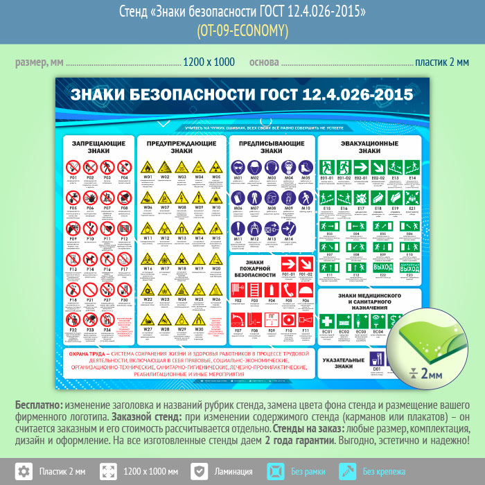 Стенд «Знаки безопасности ГОСТ 12.4.026-2015» (OT-09-ECONOMY) в Кызыле купить