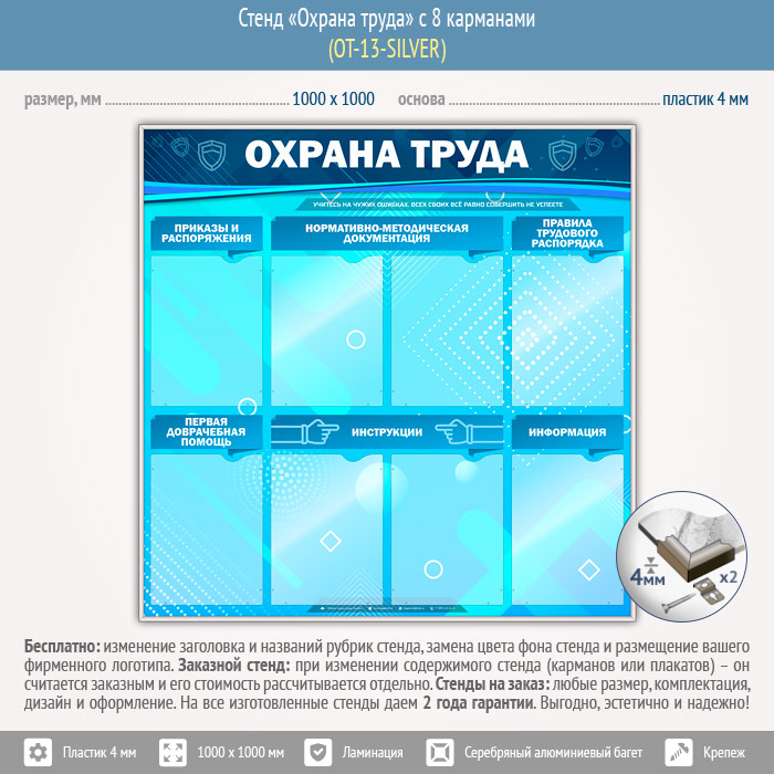 Стенд «Охрана труда» с 8 карманами (OT-13-SILVER) в Кызыле купить