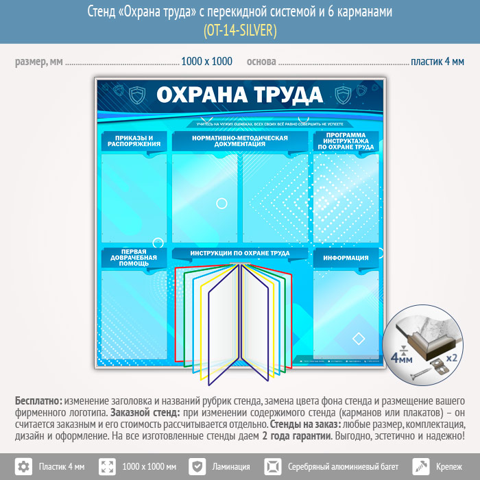 Стенд «Охрана труда» с перекидной системой и 6 карманами (OT-14-SILVER) в Кызыле купить