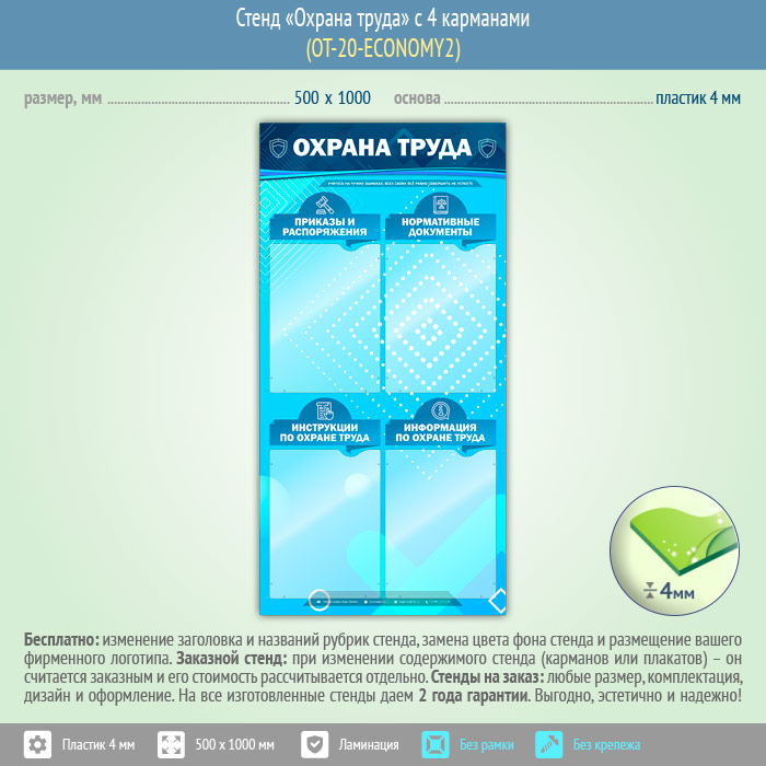 Стенд «Охрана труда» с 4 карманами (OT-20-ECONOMY2) в Кызыле купить