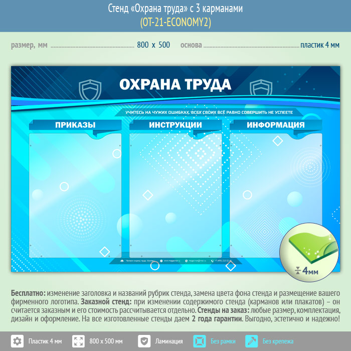 Стенд «Охрана труда» с 3 карманами (OT-21-ECONOMY2) в Кызыле купить