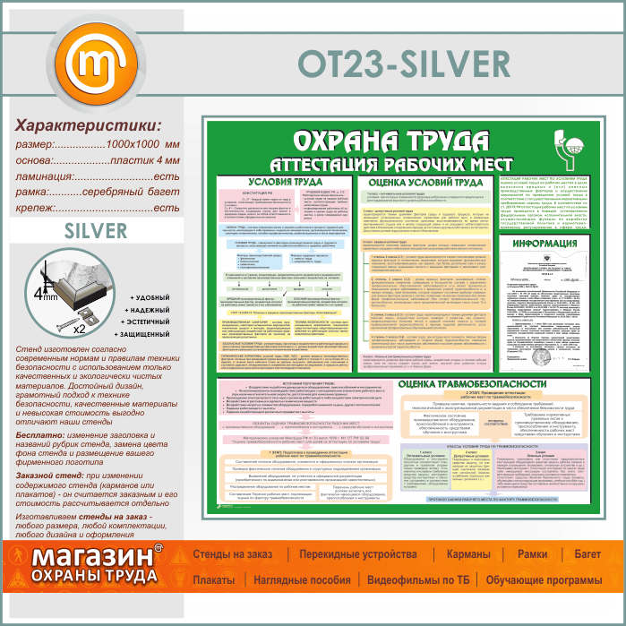 Стенд «Охрана труда. Аттестация рабочих мест» с карманом (OT-23-SILVER) в Кызыле купить
