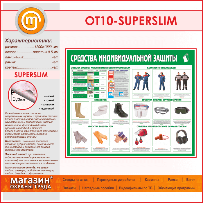 Стенд «Средства индивидуальной защиты» (OT-10-SUPERSLIM) в Кызыле купить