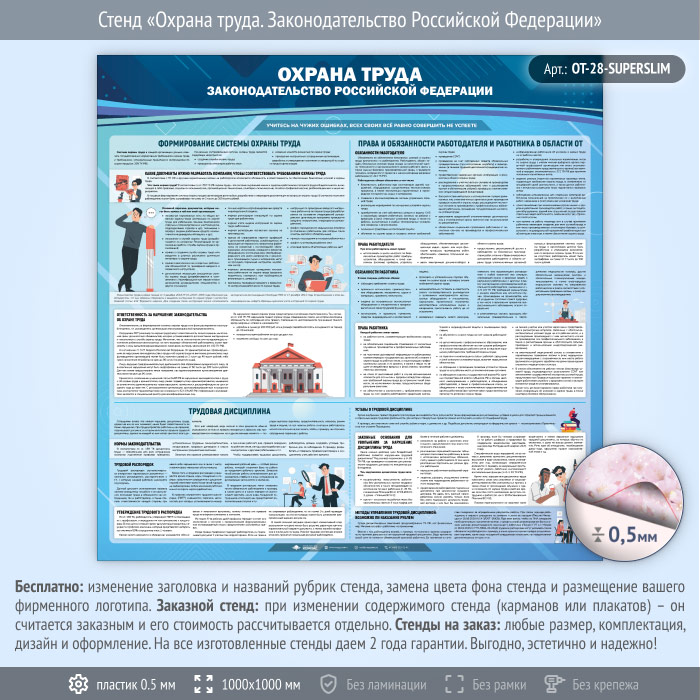 Стенд «Охрана труда. Законодательство Российской Федерации» (OT-28-SUPERSLIM) в Кызыле купить