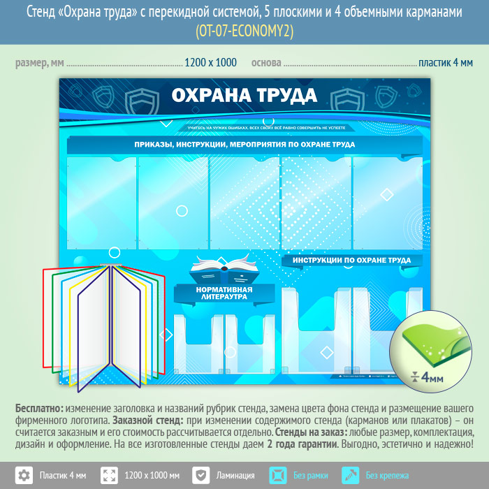 Стенд «Охрана труда» с перекидной системой, 5 плоскими и 4 объемными карманами (OT-07-ECONOMY2) в Кызыле купить
