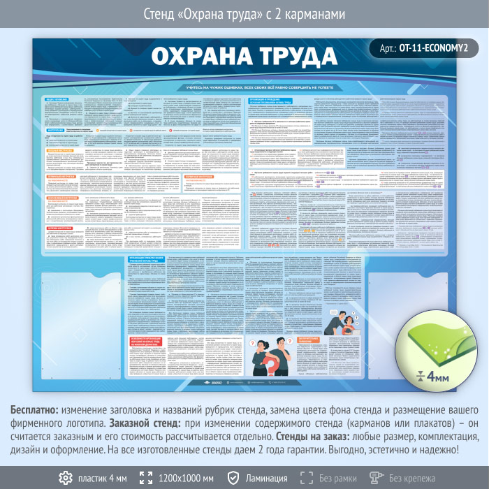 Стенд «Охрана труда» с 2 карманами (OT-11-ECONOMY2) в Кызыле купить