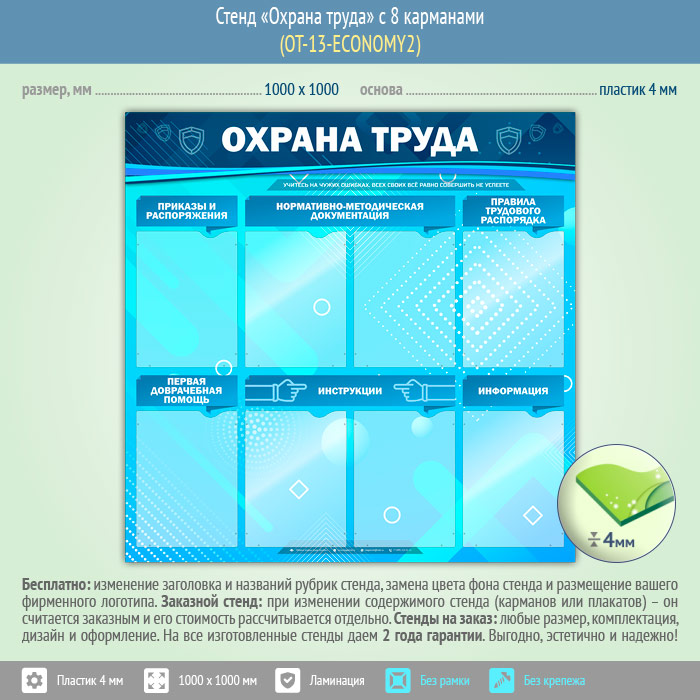 Стенд «Охрана труда» с 8 карманами (OT-13-ECONOMY2) в Кызыле купить