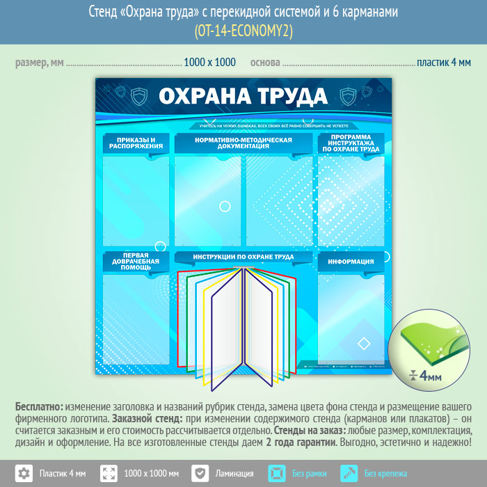 Стенд «Охрана труда» с перекидной системой и 6 карманами (OT-14-ECONOMY2) в Кызыле купить