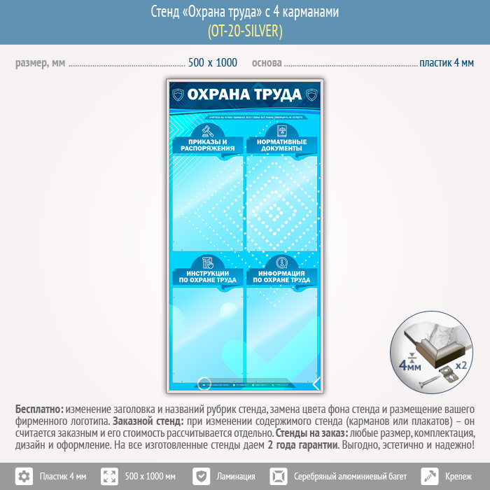 Стенд «Охрана труда» с 4 карманами (OT-20-SILVER) в Кызыле купить
