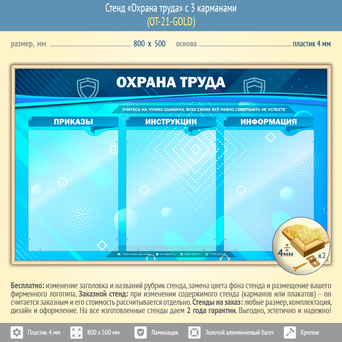 Стенд «Охрана труда» с 3 карманами (OT-21-GOLD) в Кызыле купить