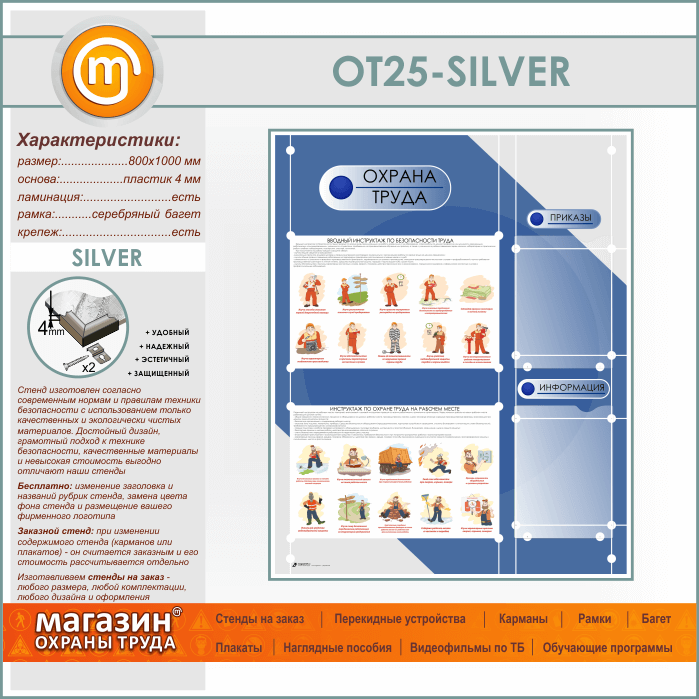Стенд «Охрана труда» с 2 плоскими карманами (OT-25-SILVER) в Кызыле купить