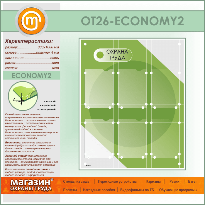 Стенд «Охрана труда» с 6 плоскими карманами (OT-26-ECONOMY2) в Кызыле купить