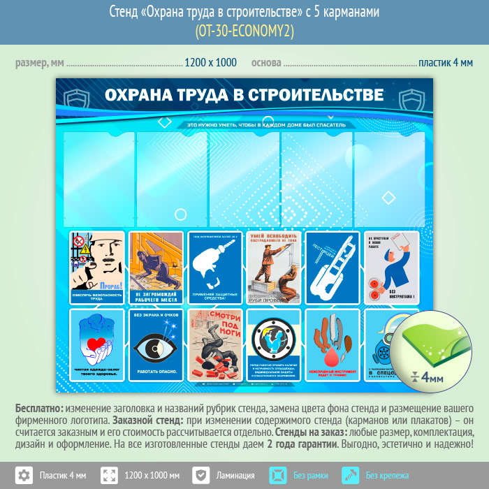 Стенд «Охрана труда в строительстве» с 5 карманами (OT-30-ECONOMY2) в Кызыле купить