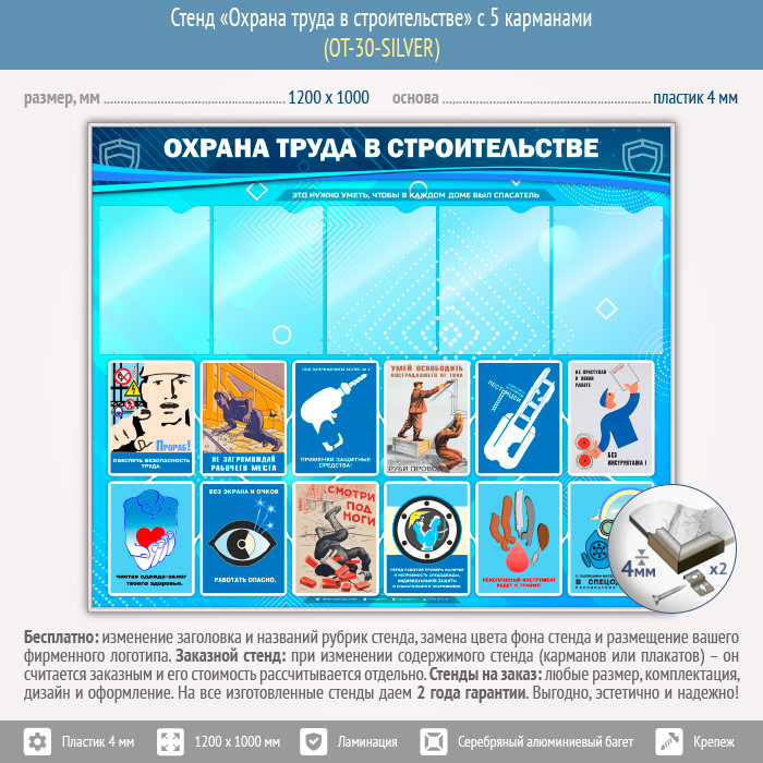 Стенд «Охрана труда в строительстве» с 5 карманами (OT-30-SILVER) в Кызыле купить