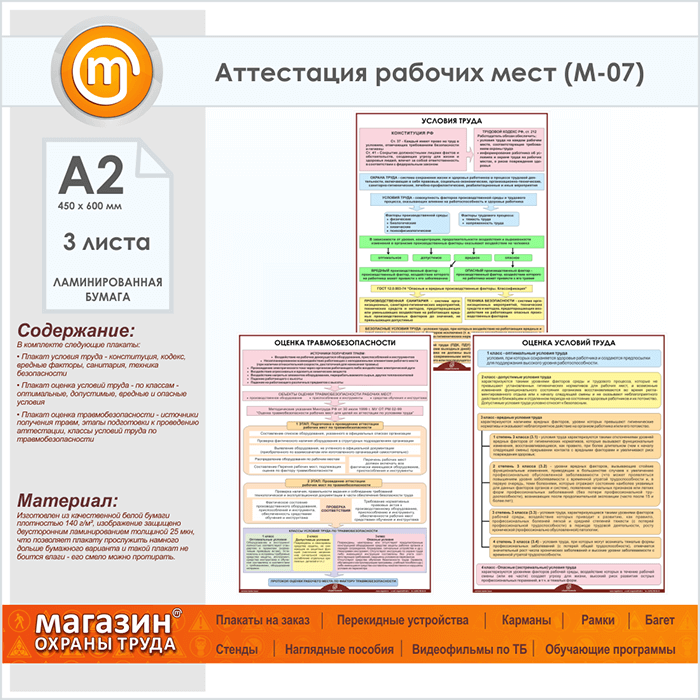 Плакаты «Аттестация рабочих мест» (М-07, ламинированная бумага, А2, 3 листа) в Кызыле купить