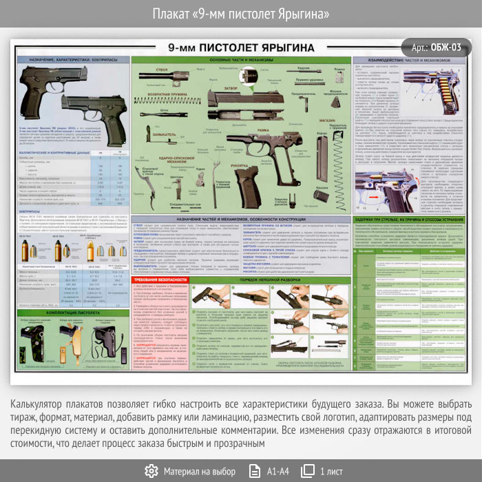 Плакат «9-мм пистолет Ярыгина» (ОБЖ-03, 1 лист) в Кызыле купить