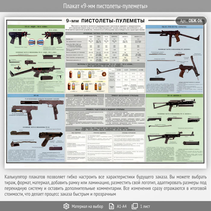 Плакат «9-мм пистолеты-пулеметы» (ОБЖ-06, 1 лист) в Кызыле купить