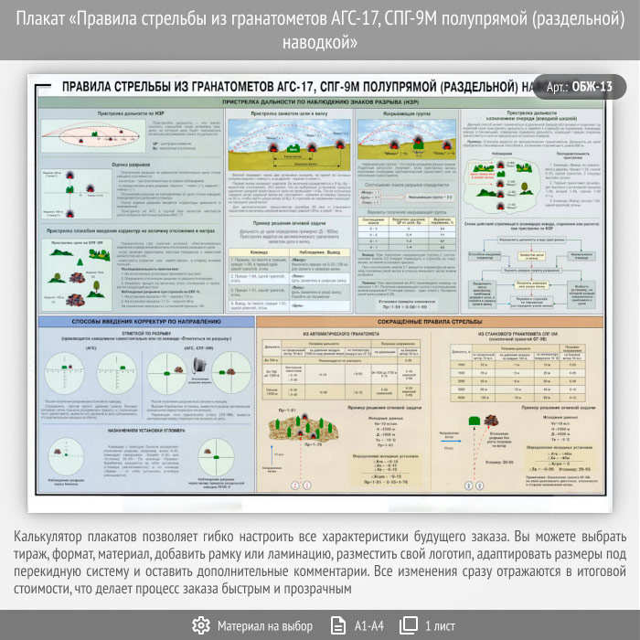 Плакат «Правила стрельбы из гранатометов АГС-17, СПГ-9М полупрямой (раздельной) наводкой» (ОБЖ-13, 1 лист) в Кызыле купить