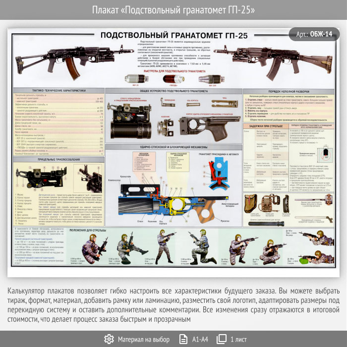 Плакат «Подствольный гранатомет ГП-25» (ОБЖ-14, 1 лист) в Кызыле купить