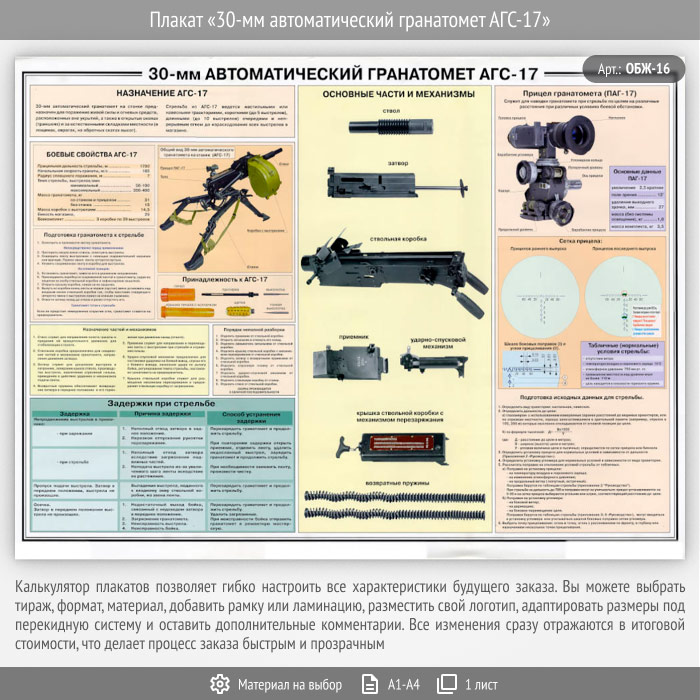 Плакат «30-мм автоматический гранатомет АГС-17» (ОБЖ-16, 1 лист) в Кызыле купить