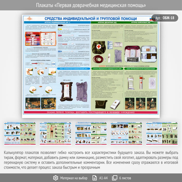Плакаты «Первая доврачебная медицинская помощь» (ОБЖ-18, 6 листа) в Кызыле купить