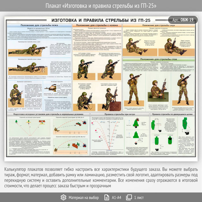 Плакат «Изготовка и правила стрельбы из ГП-25» (ОБЖ-19, 1 лист) в Кызыле купить