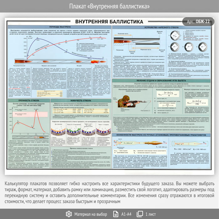 Плакат «Внутренняя баллистика» (ОБЖ-22, 1 лист) в Кызыле купить