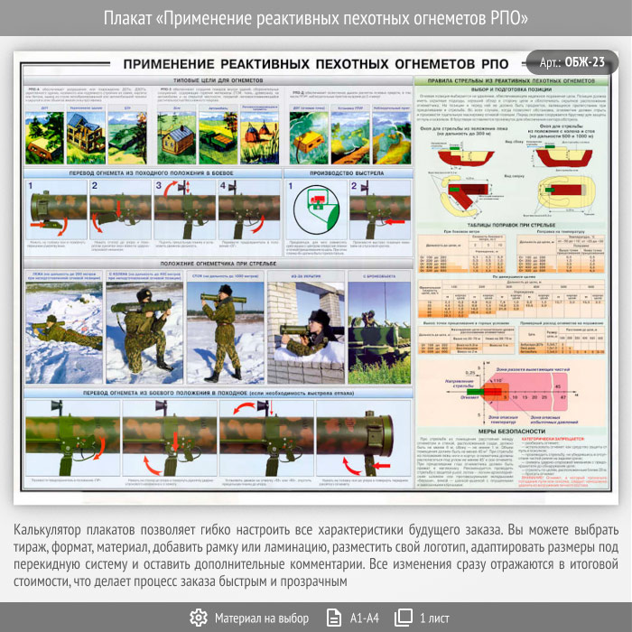 Плакат «Применение реактивных пехотных огнеметов РПО» (ОБЖ-23, 1 лист) в Кызыле купить