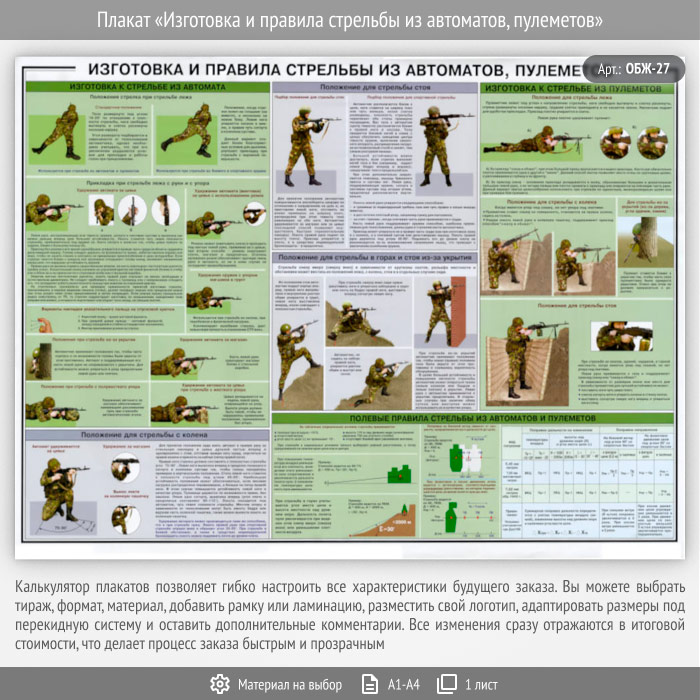 Плакат «Изготовка и правила стрельбы из автоматов, пулеметов» (ОБЖ-27, 1 лист) в Кызыле купить