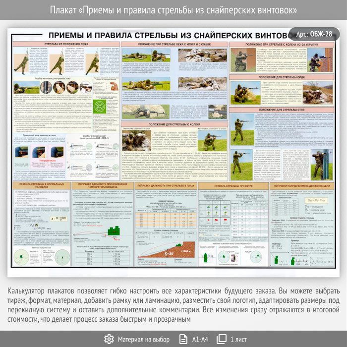 Плакат «Приемы и правила стрельбы из снайперских винтовок» (ОБЖ-28, 1 лист) в Кызыле купить