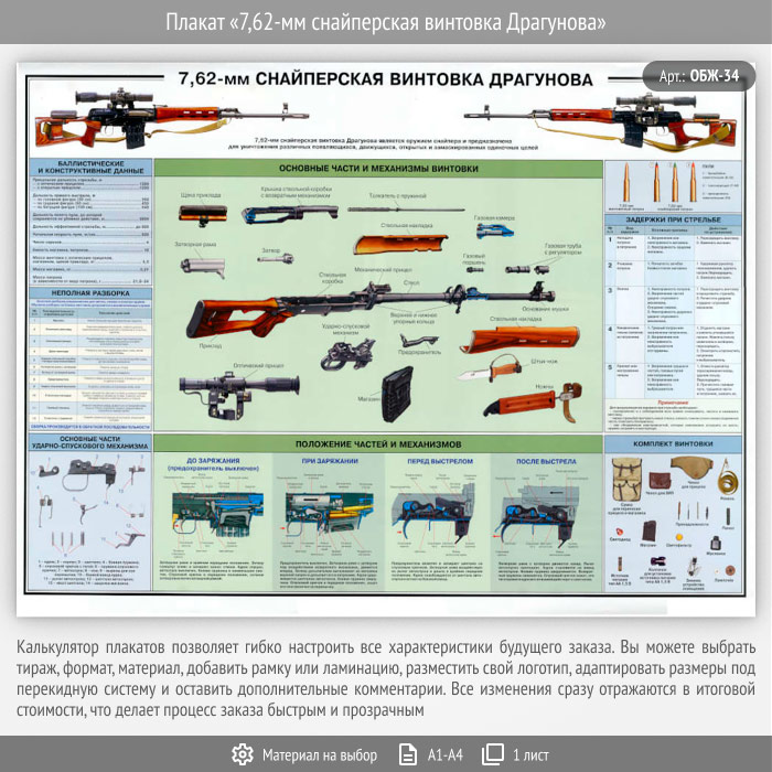 Плакат «7,62-мм снайперская винтовка Драгунова» (ОБЖ-34, 1 лист) в Кызыле купить