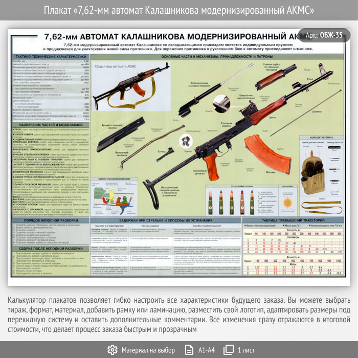 Плакат «7,62-мм автомат Калашникова модернизированный АКМС» (ОБЖ-35, 1 лист) в Кызыле купить