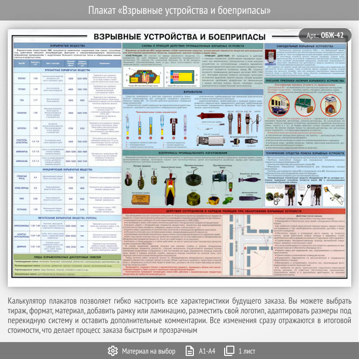 Плакат «Взрывные устройства и боеприпасы» (ОБЖ-42, 1 лист) в Кызыле купить