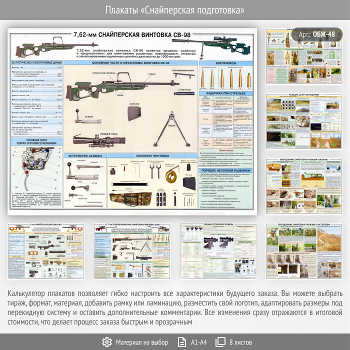 Плакаты «Снайперская подготовка» (ОБЖ-48, 8 листа) в Кызыле купить