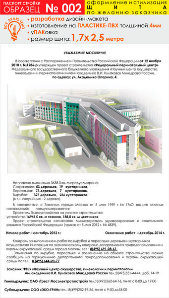 Паспорт стройки, образец № 2 (пластик 4 мм, 1700х2500 см) в Кызыле купить