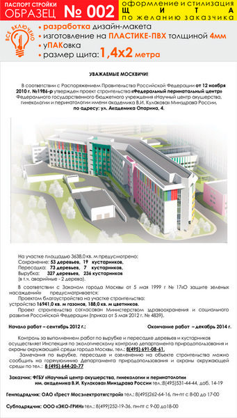Паспорт стройки, образец № 2 (пластик 4 мм, 1400х2000 cм) в Кызыле купить