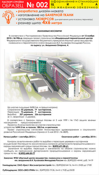 Паспорт стройки, образец № 2 (баннерная ткань, 4000х6000 см) в Кызыле купить