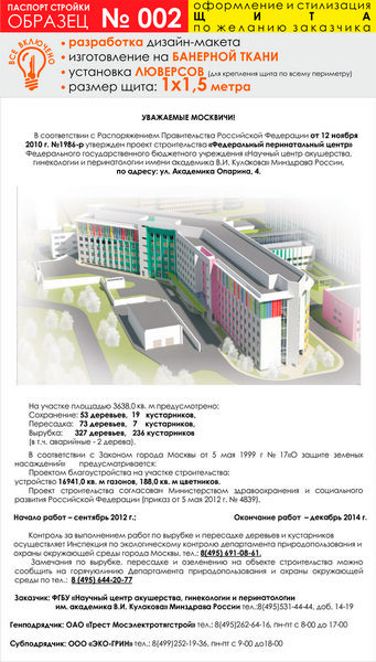 Паспорт стройки, образец № 2 (баннерная ткань, 1000х1500 cм) в Кызыле купить
